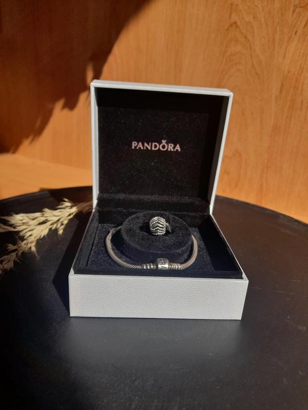 Новый, подарить а по объему не выбрался. В комплекте браслет, коробочка, шарм и салфетка. длина 19см.
