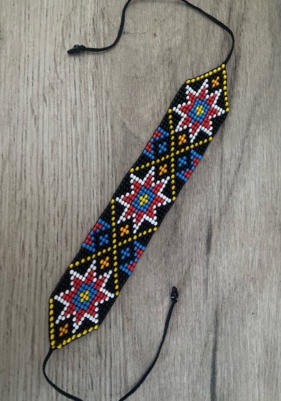 Браслет из чешского бисера Длина полотна 17 см. Общая с завязками 41 см.