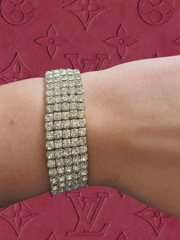 Сияющий стразовый браслет. Стразы в 5 рядов.