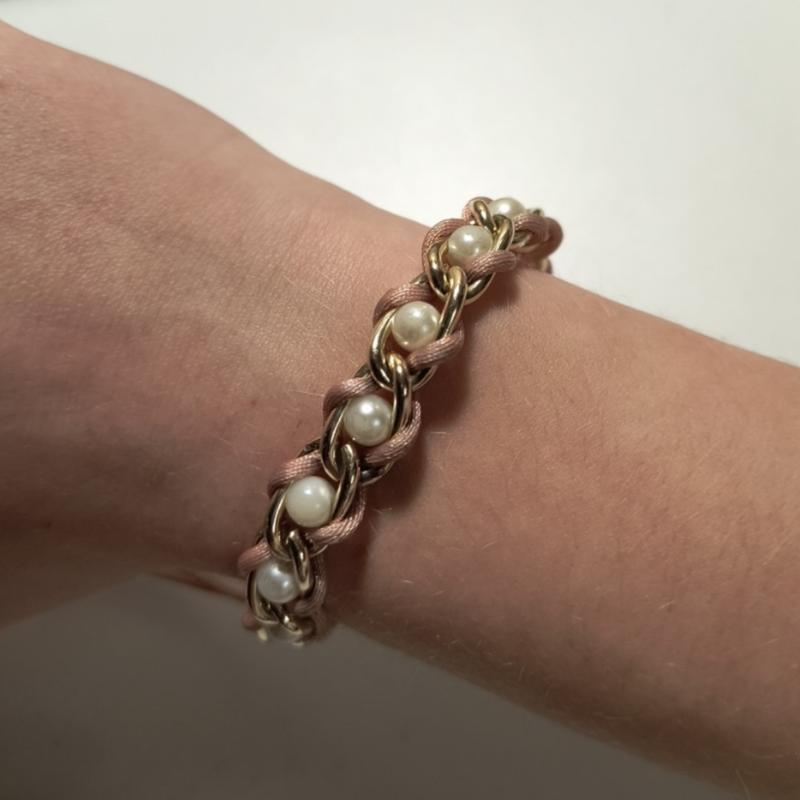 Стильный браслет на руку, который легко регулируется с помощью шнура. Сочетание нежных бусин и металлической цепочки добавляет изделию особый шарм и элегантной уверенности Строй рада ответить на ваши вопросы