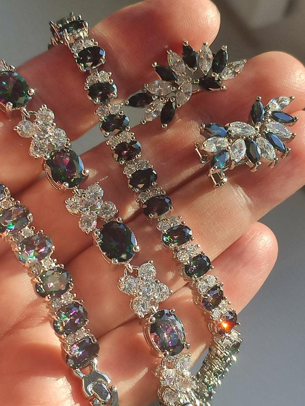 Красивый браслет с мостиком топазом,925 пробы на браслетах, длина 18 см с городктопазами и белыми циркономами, возможно подобрать набор,серьги,кольцо