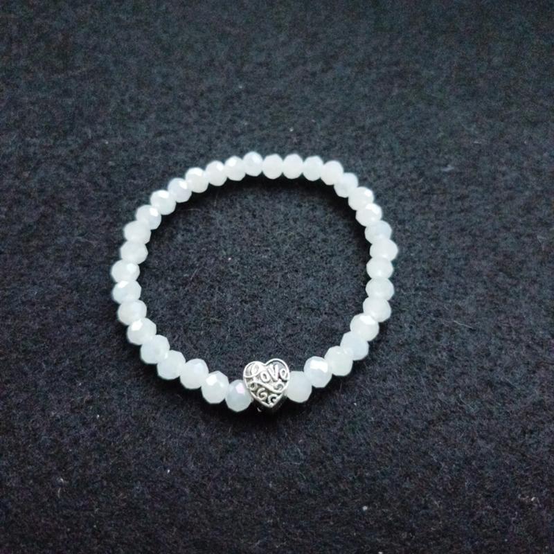 браслет из хрустальных бусин молочного цвета с перламутровым отливом с вставкой love