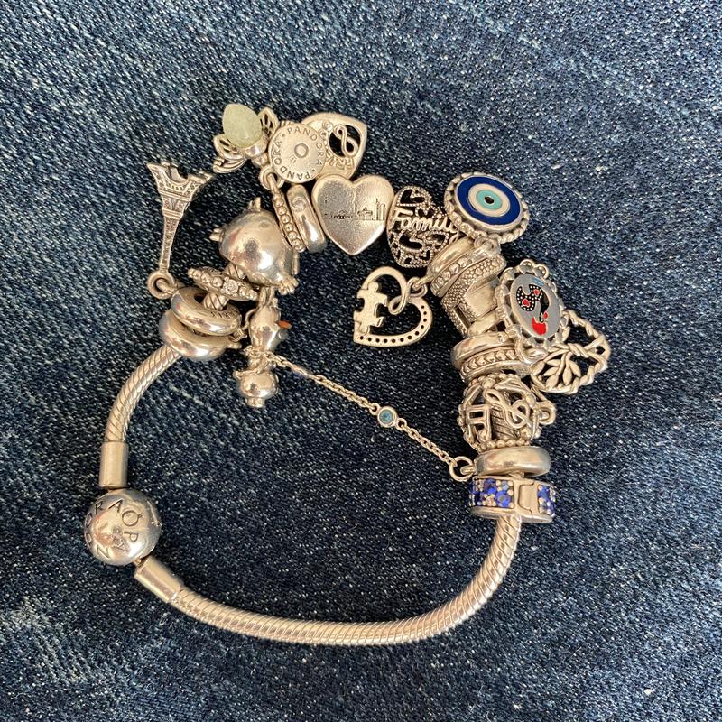 Чарівний браслет Pandora + 17 бусин. Фантастичні спогади, 7 країн. Все оригінальне. Збирала з любовʼю про важливі моменти. Нажаль, чеки не зберігала, бо не планувала продавати. Такі обставини.