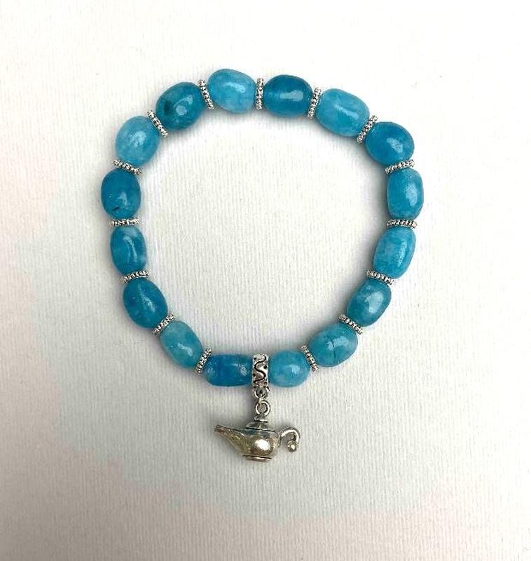 Браслет Аквамарин галтівка 11х7мм+- з металевими вставками L-18см+- стрейч