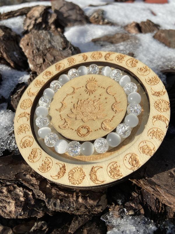 Браслет из кошачьего глаза и сахарного кварца