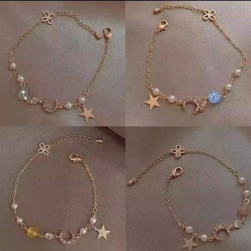 Девчачий браслет, золотой цвет Циркон звезда месяц первичный браслет.Простые геометрические модные женские браслеты-цепочки.