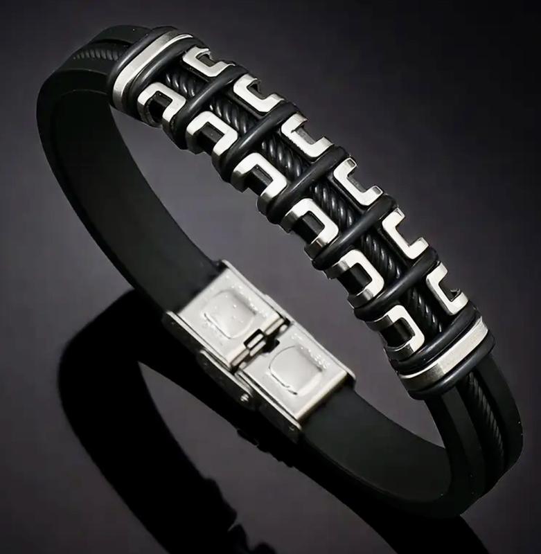 Браслет мужской, каучук и нержавеющая сталь. Длина 22см, можно укоротить. Надежный замок.