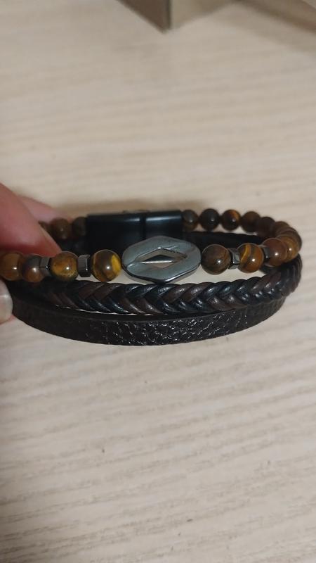 Мужской стильный, кожаный браслет на магнитной застежке.