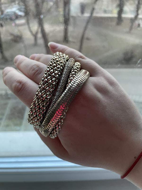 Біжутерія. Золотий гарний колір, але від віку трохи де-не-де золотий витерся і стали, як срібло. (на фото вказала) Вживу практично непомітно. Дуже якісний метал. Купувала собі колись на випускний. Розтягуються. Комплект 4 шт.