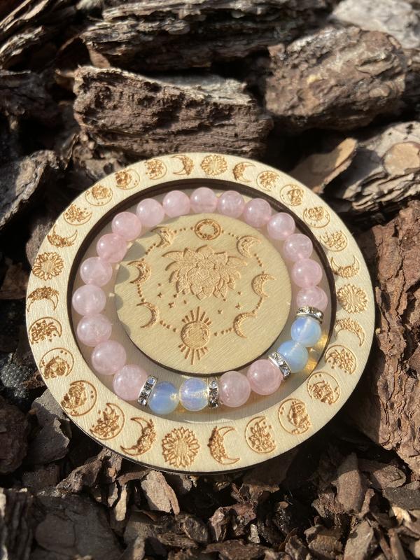 Браслет опаліт та рожевий кварц
