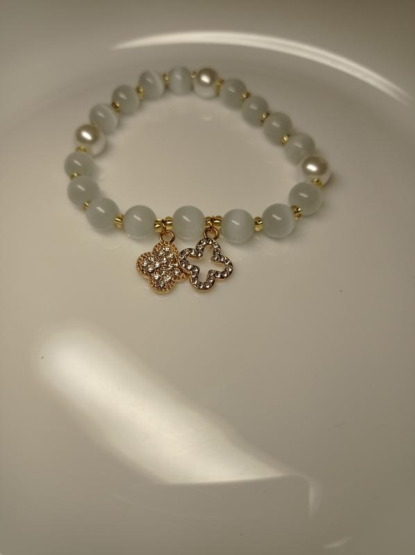 Браслет Четырелистник Цвет: белый Цвет металла: золотой материал ювелирный сплав