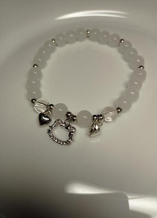 Браслет кошка Цвет: белый Цвет металла: серебряный С колокольчиком