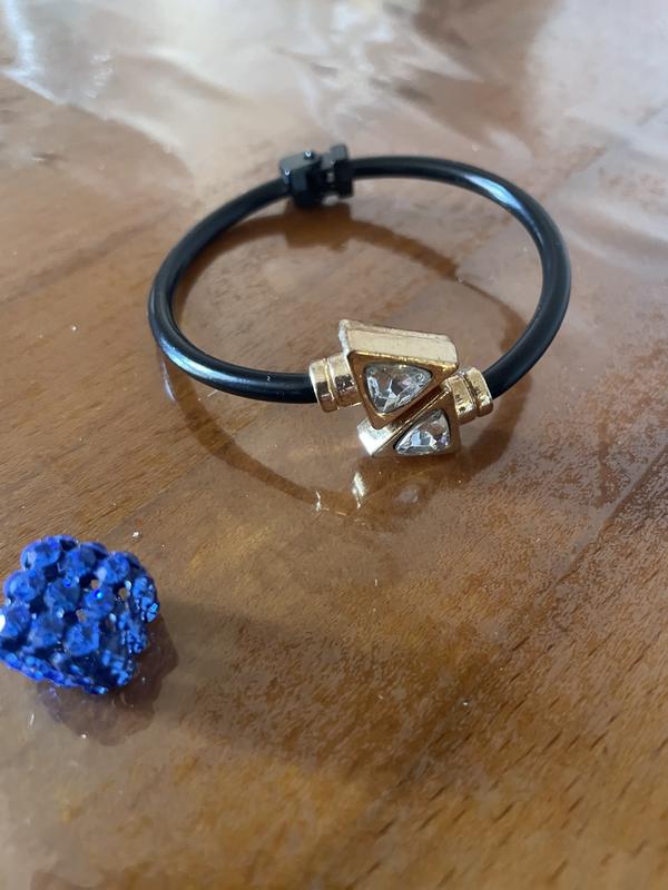 Представляем стильный браслет, сочетающий в себе элегантность и современный дизайн. Особенности: ✨ Материалы: прочный черный ободок с гладкой поверхностью и стильная центральная вставка золотистого цвета. ✨ Декор: Два треугольных прозрачных кристалла, переливающихся на свету, добавляя изделию изысканный блеск. ✨ Удобство: Легкая конструкция и удобная застежка обеспечивают комфортную носку в течение всего дня. ✨ Стиль: Подойдет как для повседневного образа, так и для особых событий, подчеркивая ваш вкус и утонченность. Этот браслет станет отличным дополнением к вашей коллекции аксессуаров или же идеальным подарком для особого человека!