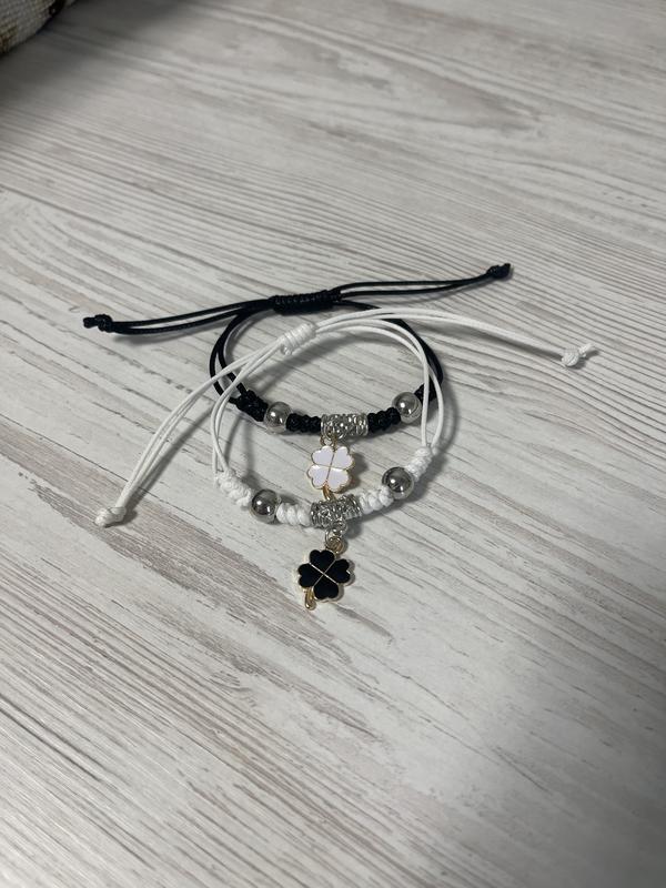 В наличии есть парные браслеты с подвеской🍀 Цвет: черный и белый 🖤🤍 Размер: регулируется ✅ Если есть дополнительные вопросы пишите в личные сообщения 💌