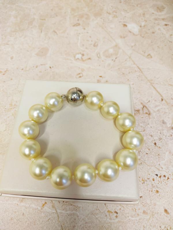 Браслет с большими бусинами- имитация жемчужин. На магните. Длина 21см. Имеет вес. Через вузлик