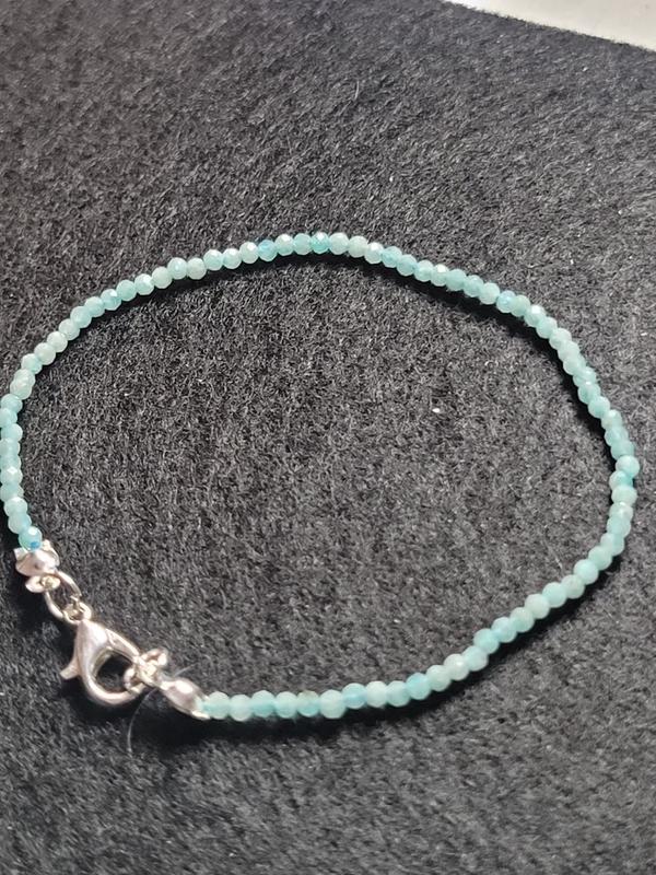 Синій амазоніт — камінь душевної рівноваги, щирості та гармонійного спілкування. Його енергія заспокоює, допомагає подолати внутрішні страхи та сприяє відкритості у стосунках. Малесенькі намистини 2 мм створюють витончений, майже повітряний образ — ідеальний для поєднання з іншими прикрасами або як самостійний, ніжний акцент.