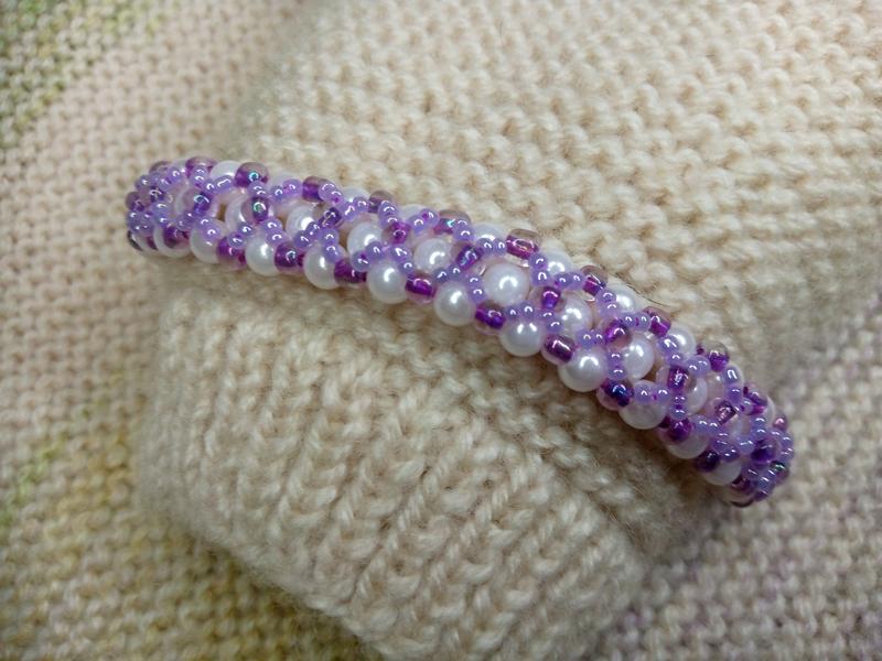Цей браслет зроблен з якісного китайського бісеру та білих намистин. Підійде до вбрання як жинці так і дівчинці. Розміри браслету фіолетового кольору: довжина - 20см, ширина - 1,5см, вага - 13г; розміри браслету зеленого кольору: довжина - 22,5см, ширина - 1,5см, вага -14г. Є ще такий же з синім бісером.