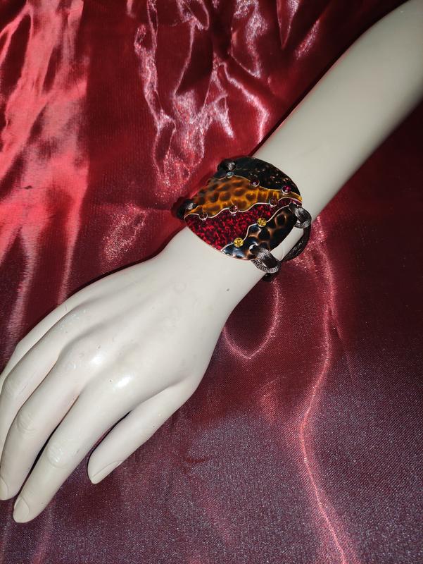 Браслет женский в стиле "бохо", коричнево- бордового цвета, со стразами, металлический, на шнуре, покрытие эмалевое, застежка на карабин, длина изделия 18 см +, длину можно регулировать цепочкой - удлинителем.