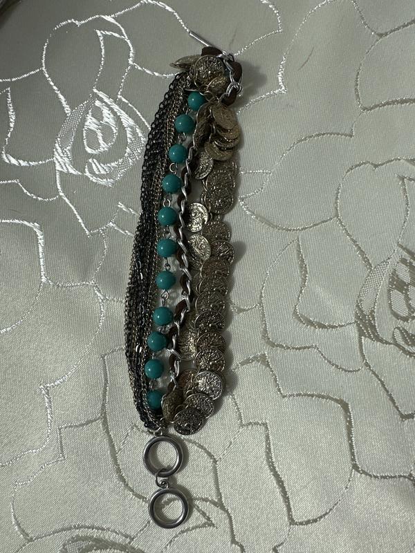 Браслет з ланцюжком,бусинками,монетками,шнурком ідеально підійде до літнього образу,довжина 20,5см