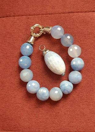 Браслет из круглых ограненных бусин на резинке и застежке. К нему в комплект есть ожерелье и кулон (фото). Продается отдельно.