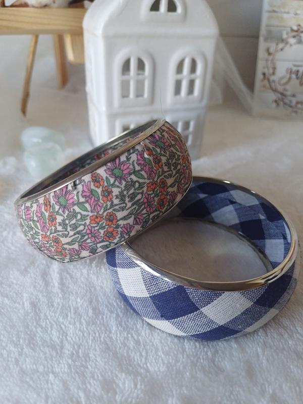 Набор круглых браслетов от шведского бренда H&M Внутренний диаметр 7см ширина 3 см. Основа металл, декорирован текстилем.