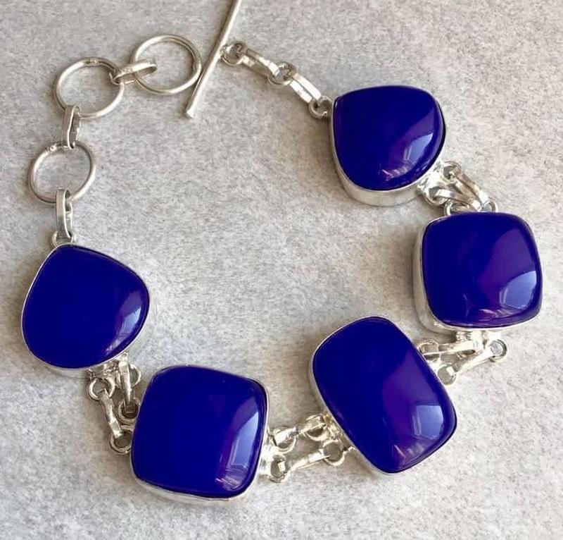 Уточняйте наличие товара. Индия, Браслет с голубыми халцедонами, длина 21 см Все украшения из Индии изготавливаются мастерами вручную. Основа – низкопробное серебро, покрытие – слой серебра 925. Примечание - натуральные камни могут иметь включения, микровыемки, шероховатости природного характера и неровности геометрии. Предоставлена максимально корректная фото изделия. Вы получите именно то изделие, которое на фото в надежной упаковке! Доставка: ПІСЛЯПЛАТИ НЕМАЄ. Оплата на карту Приват банка или Монобанку Отправка по Новой почте или Укр-почтению