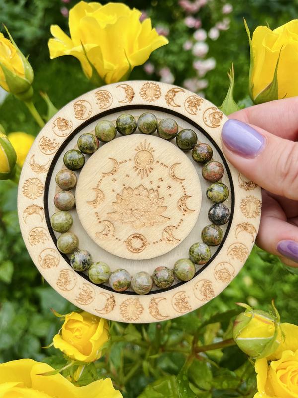 Браслет з натурального каміння унакіт 🌿 Унакіт: • Камінь емоційного зцілення, дуже м’який, лагідний. • Допомагає «випустити» старі емоції, травми, образи — без болю, м’яко і природно. • Символ внутрішнього зростання, гармонії тіла і душі. • Часто використовується у практиках самоприйняття та медитації.