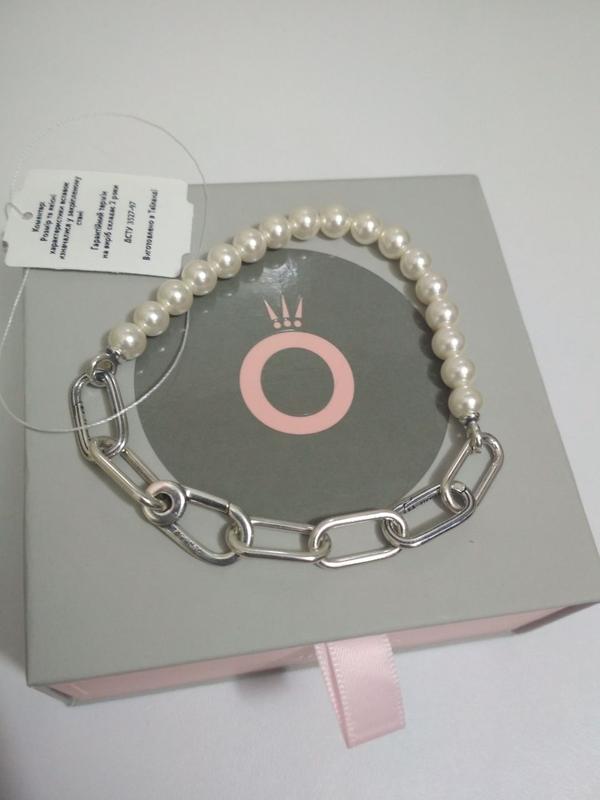 Серебряный браслет с искусственными жемчужинами Новый, идет вместе с биркой Размер 17,5 и 20 см Надежная застежка карабин Браслет имеет два разъемных звена для бусин Материал: серебро Проба: S925 ALE За более детальной информацией убедитесь в личные сообщения