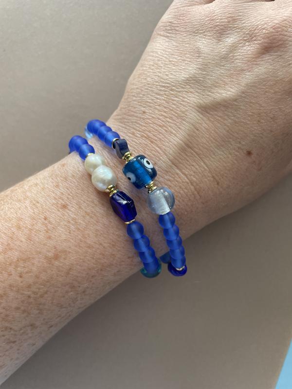 Набір яскравих браслетів Перлини, намистини від злого ока Кристали та вінтажне скло