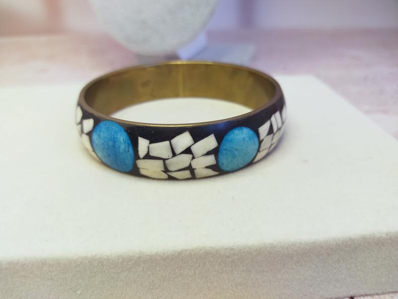 Винтажный браслет. Инкрустируемый ракушки на латунной основе. Диаметр-6,7см