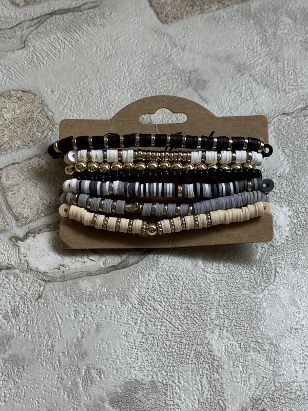 В набор входят 7 браслетов из бусин хейши на эластичной резинке Стильно красиво смотрятся вместе