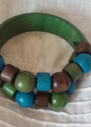 деревянный браслет, красиво комбинируется с льняной одеждой