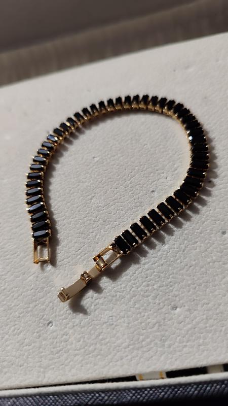 Браслет под теннисный, с черными камушками, в золотой оправе