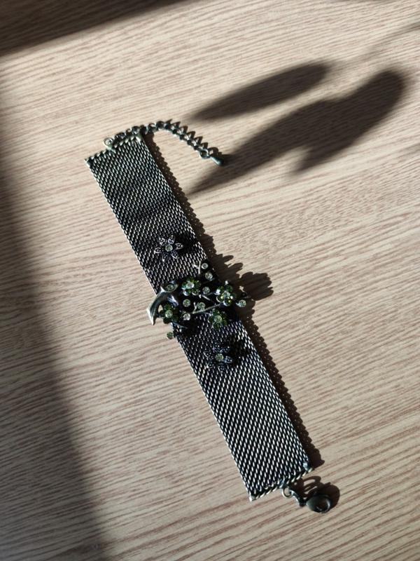 Новый браслет, украшенный стразами. Длина без застежки 16 см. Застежка достаточно длинная, поэтому подойдет на любую руку.