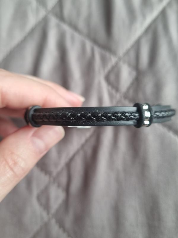 Черный кожаный браслет с плетеным шнуром 23 см