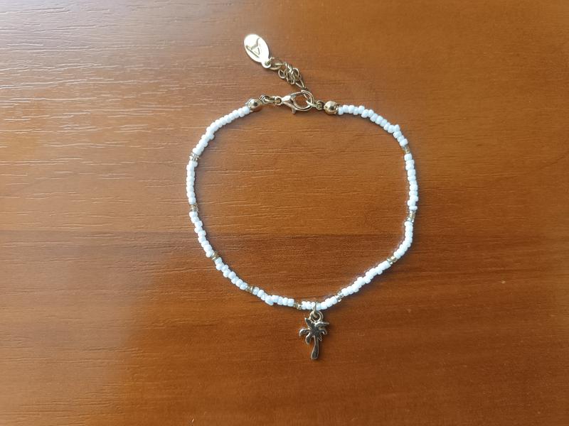 🌴 Брасле из Англии - бело-золотой, с пальмой 🔹 Состояние: новый, без следов ношения 🔹 Материал: стеклянные бусины, металлические вставки, золотистый шарм 🔹 Длина: 20 см + 3 см регулировки 🔹 Застежка: лобстер-класс, удлинительная цепочка с биркой 🔹 Происхождение: привезено из Великобритании 🔹 Подходит: на запястье или лодыжку (унисекс, летний стиль) 🔹 💬 Легкий, эстетичный акцент для образа – пальма добавляет тропического настроения. Идеально для лета, фотосессий, подарка или ежедневной носки.