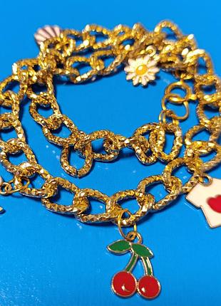 Браслет одевается в два ряда. Алюминиевая цепь + подвески. На 18 размер.