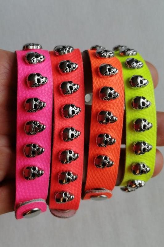 Кожаные браслеты с черепами ширина 1,4 длина 20 регулировка на 3 кнопки
