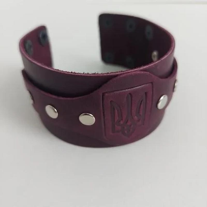 Браслет «Тризуб» (широкий, цвет - марсала) (25502) Стильный кожаный браслет «Тризуб» - это сочетание современного дизайна и глубокого национального символизма. Аксессуар создан для тех, кто ценит украинские традиции, качество и уверенность в каждой детали. Браслет изготовлен из натуральной кожи, имеет четкое тиснение с орнаментом и символом трезубца - знака силы, мужества и независимости. Благодаря удобной металлической застежке на кнопках браслет легко регулируется по обхвату запястья (165 мм, 180 мм, 200 мм), обеспечивая комфортное ношение каждый день. Такой браслет станет отличным выбором для мужчин, которые хотят подчеркнуть свой стиль и патриотизм. Подходит к повседневному образу, этно-луку или как подарок для настоящего украинца. Характеристики: - Материал: натуральная кожа - Техника: тиснение - Застежка: металлические кнопки - Обхват запястья: 165 мм, 180 мм, 200 мм (регулируется) - Ширина: 40 мм - Цвет: марсала - Производитель: Украина Преимущества: - натуральная кожа - прочность и долговечность символика трезубца - оберег и гордость регулировка размера стильный аксессуар для любого образа идеальный подарок