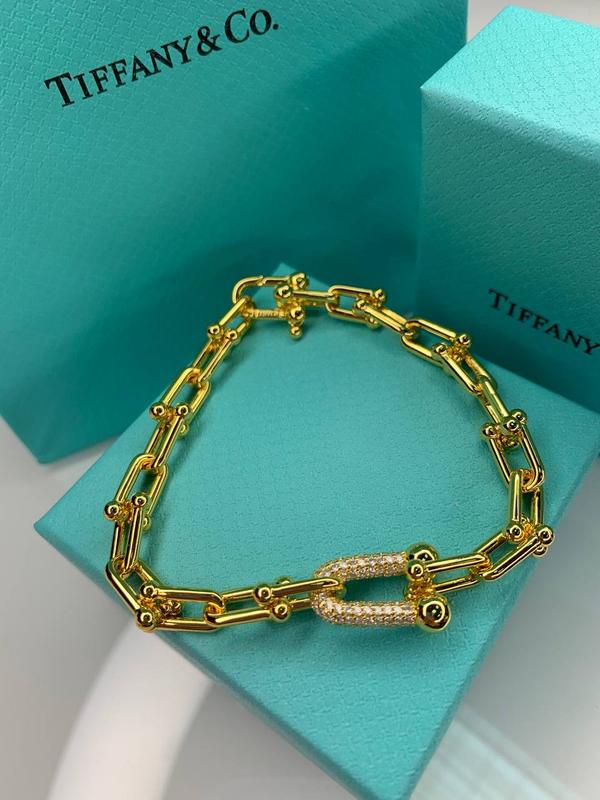 Тиффани брендовый браслет с цирконами в позолоте / упакован в мешочек тиффани