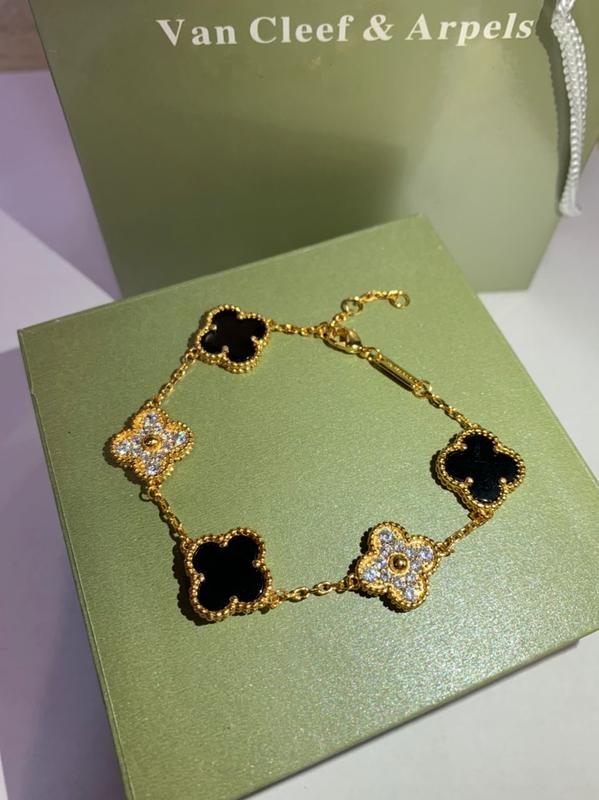 Браслет ван клиф на 5 элементов / черный под оникс / позолота 18 к / вставки цирконий