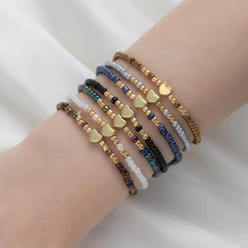 1 шт. Браслет резинка з бісеру та серцем