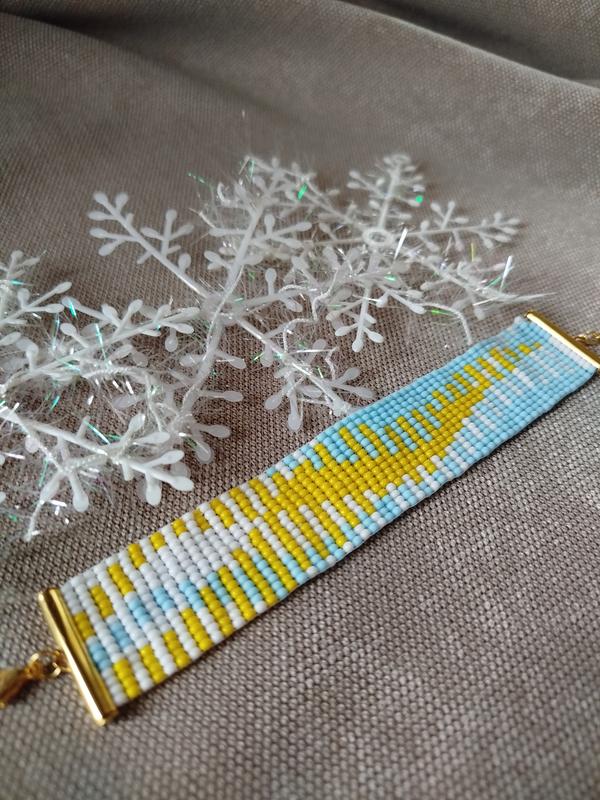Браслет из бисера ручной работы 💫 Элегантный браслет из мелкого бисера в свежих бело-голубо-желтых тонах – словно дыхание зимы и луч солнца одновременно. Сдержанный, но заметный, он красиво подчеркивает запястья и добавляет образу легкости и стиля ✨ 🔹 изготовлен вручную 🔹 ровное плетение и аккуратные детали 🔹 удобная застежка 🔹 подходит как к повседневному, так и к праздничному образу 🎁 Идея для подарка себе или близкому человеку 🚚 Быстрая отправка Выбирай украшение с характером - каждый браслет является нужным 🤍