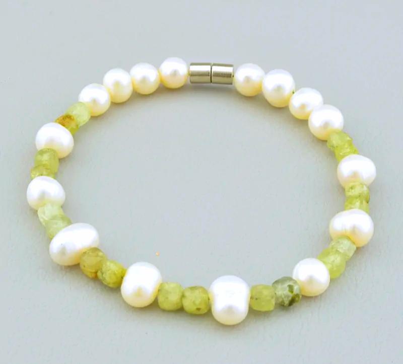 Браслет натуральный жемчуг, натуральный гранат Новый Размер 17-18