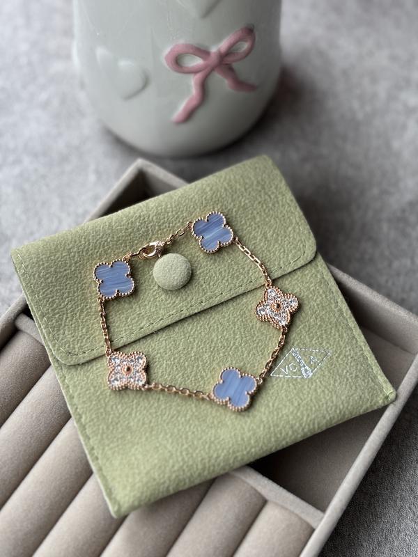 Преміум якість. Присутні всі лого бренду. Вставка натуральний камінь халцедон Покриття рожеве золото (не темніє, не облазить) 🍀Вартість браслета на 5 мотив 1400 грн Відправка в коробочках 🎁