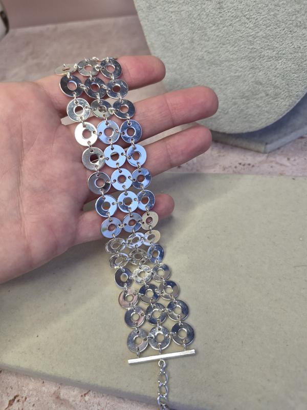 Боаслет металлический серебристого тона. Ширина-3см. Довжина-19-21,5см.