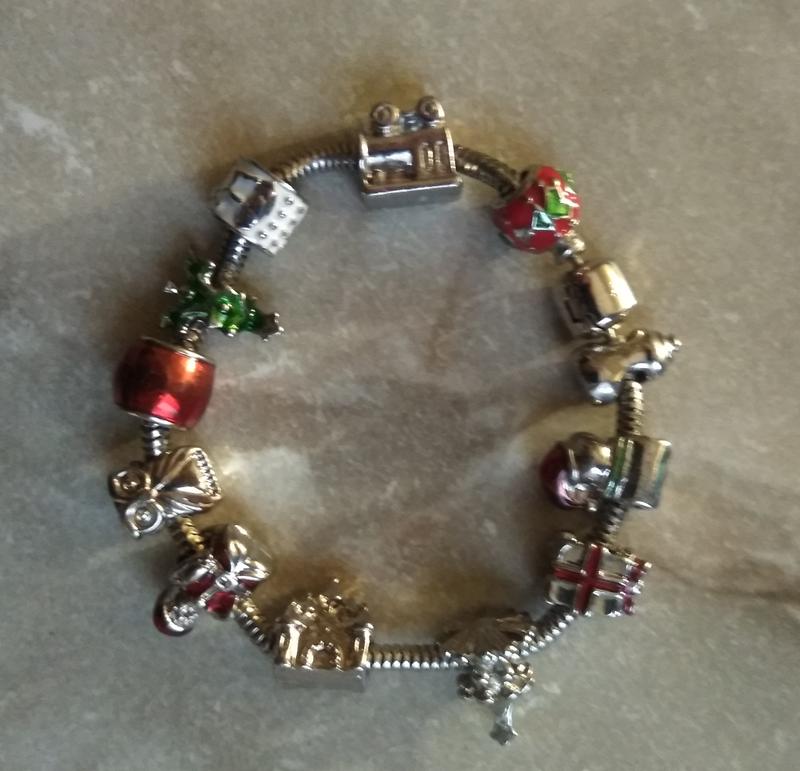 Браслет в стилі Пандора. Стильний і ефектний, роз'ємний. Вінтаж. Дуже гарно збережений. Основа - фірмовий металевий сплав, на яку кріпляться оригінальні підвіски покриті емаллю. Розмір на об'єм руки 16-18. Підійде для створення цікавого образу на різдвяно-новорічні свята.