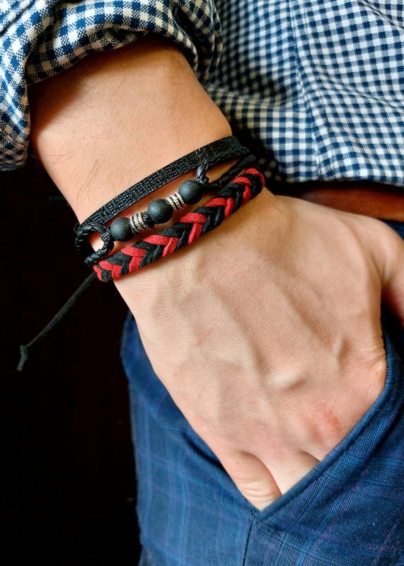 Браслет ручной работы с кожума и бусин. Застежка регулируется, самый маленький диаметр 17 см.