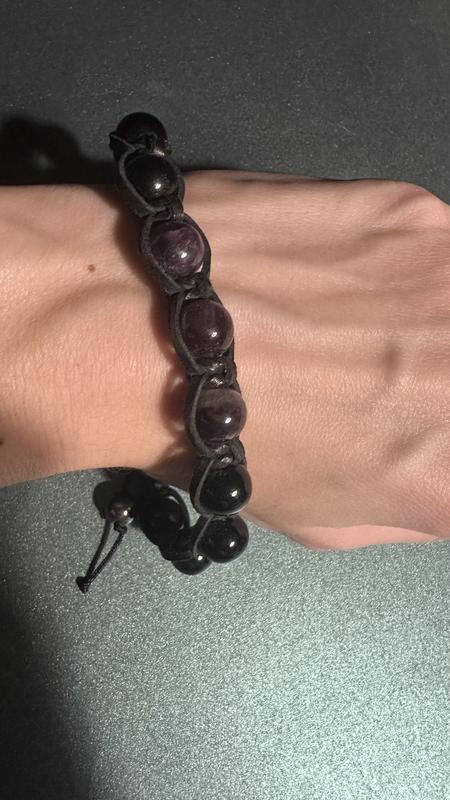 Чоловічий браслет зі шкіри та аметиста