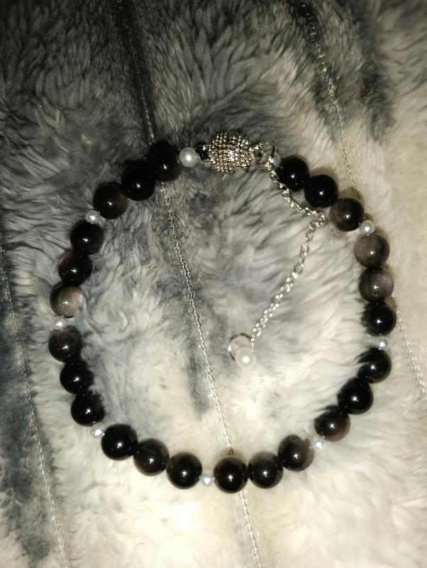 Браслет из обседиана, длина 19 см. Застежка на магните. Ручная работа,новый.